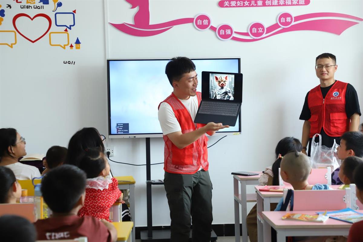 “百校联百县兴千村”行动是在乡村振兴新形势下,发挥高校教育、科技、人才优势,采取的新方式、新举措。在老寨村和大坝村的科普小课堂上,大朋友与小朋友实现了一场双向奔赴,通过简单却充满智慧的纸飞机制作,孩子们感受了空气动力学的奇妙原理;机器人大战,无人机翱翔,通过动态展演和现场互动,充分展现了现代科技与创造力的融合;以实例讲解引领孩子们进入AI的奇妙世界,充分感受人工智能时代的无限可能和创新机遇;通过妙趣横生的化学小实验,孩子们近距离观察元素间的奇妙变化。科普小课堂充分激发了孩子们对科学知识的学习兴趣,让探索和创新意识的种子在他们心中萌芽生长。