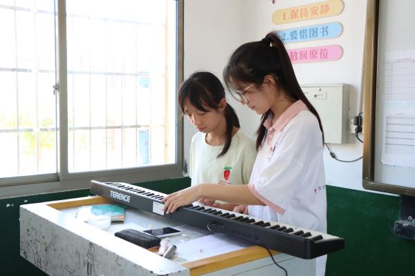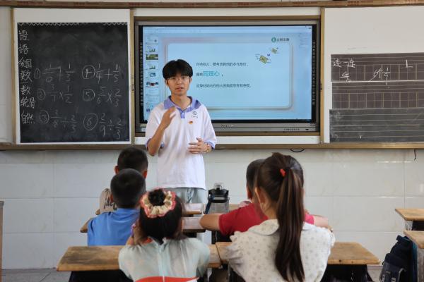 数字财会学部的学生党员们以“固本培元、全面育人”为核心,将党建初心融入教学实践,彰显新时代党员的使命担当。在教学中,学生党员们以严谨态度教授数学、语文、英语等课程,辅以钢琴乐曲、擒敌拳、纸浆画、非遗蜡染、手工扎染、阳新布贴等体艺课程,让山区的孩子们在画笔的涂抹、歌声的起伏、舞姿的舒展中,触摸到广阔世界的轮廓。此外,他们开展常态化暑期防溺水等生命教育课程,提升了孩子们的安全意识,让孩子们掌握了基本的自救方法。