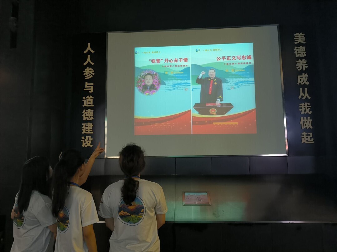 走进市博物馆,实践队员们着重参观了《十堰好人馆》,馆内展示了孝老爱亲、助人为乐、见义勇为、诚实守信、敬业奉献等来自全国、省、市的道德模范。参观期间,实践队员们认真聆听讲解,不时提出自己的疑问,积极踊跃地回答问题。一件件鲜活的事例无不震撼着实践队员们的心灵,也让实践队员们感受到了满满的正能量。实践队员们来到十堰道德模范长廊进行参观,大家深深地被十堰道德模范的崇高道德精神所感动,曹国宏、刘德华、梁勇等人的先进事迹让同学们明白好人其实就在大家身边,他们用点点滴滴的情,诠释了人性之美。活动结束后,实践队员们深受鼓舞,纷纷表示要学习和发扬道德模范和身边好人的崇高精神,用自己的实际行动传递“好人精神”。实践队员们在引导员的带领下,来到了市博物馆观影室,这里有由十堰广播电视台传输“弘扬中华传统美德、学习身边道德模范”主题的纪录片或者宣传片,讲述十堰道德模范的个人经历,以影片的形式更加鲜明深刻地传播道德模范社会感染力量。实践队员们被影片中主角的真实故事而感动,大家屏住呼吸,被道德模范们深深感动,看到他们面对命运的不公与现实的多重打击,仍然能够积极乐观面对生活,实践队员们不禁低头沉思。