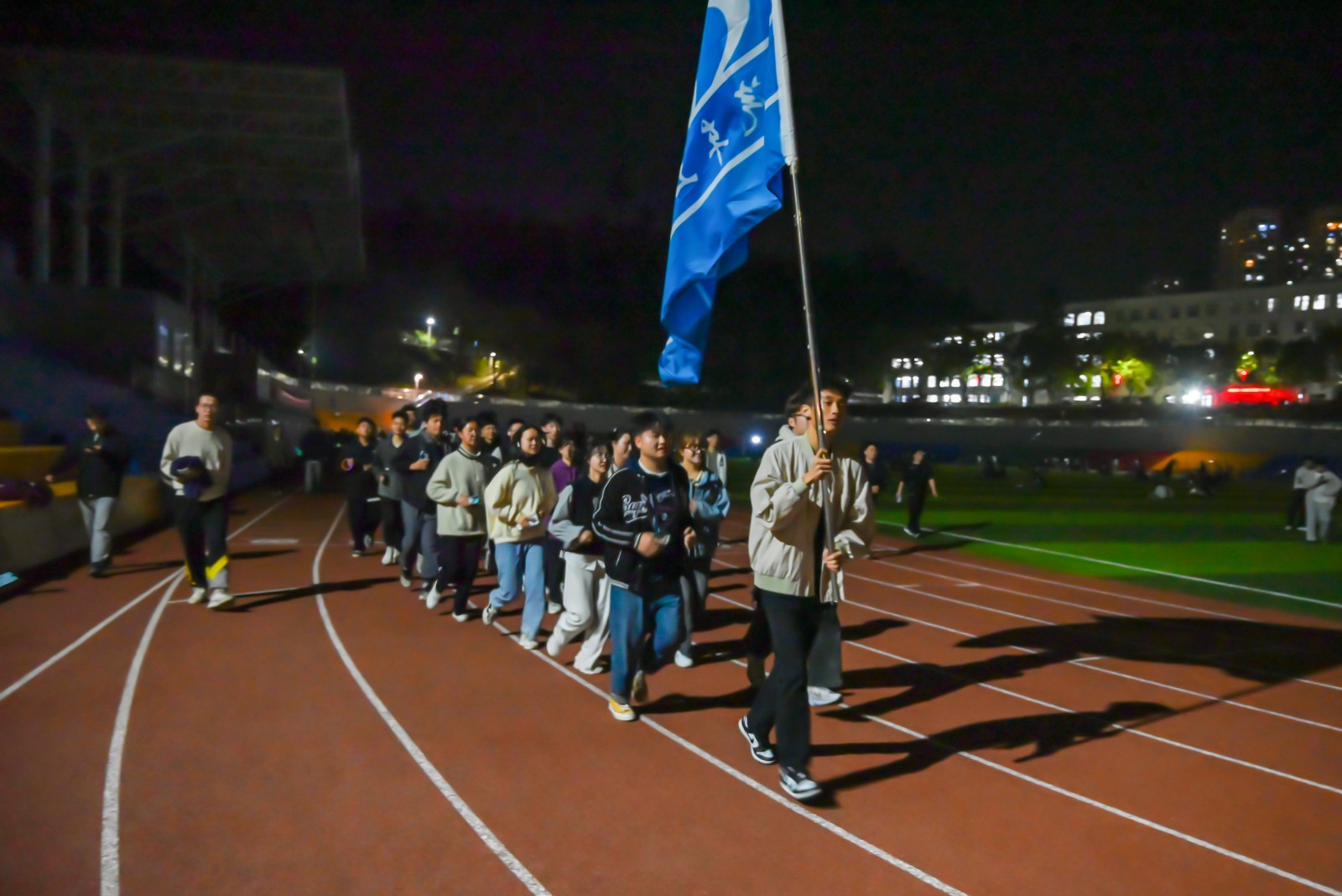 3月13日晚上,夜跑活动在汽车工程学院学生会四十余名学生干部的集体领跑中拉开了序幕。运动场上同学们手持的荧光棒在黑夜中如点点星光,随着奔跑的节奏舞动跳跃,每位同学都尽情享受着奔跑带来的欢乐,在激情和汗水中闪耀青春光芒。为更好地做好此次活动的安全后勤保障,学生会体育部和生活部在跑道边专门设置了后勤保障服务点,为参跑的车院学子提供温馨服务。参加夜跑的车辆222班王梓圳表示,夜跑活动不仅锻炼身体,还能增进同学之间的友谊,会坚持“荧”光夜跑,并带动更多同学参与进来。在活动的最后一天,汽车工程学院学生会全体学生干部齐聚操场,迈着整齐的步伐,手持院旗,在田径场上列队奔跑。