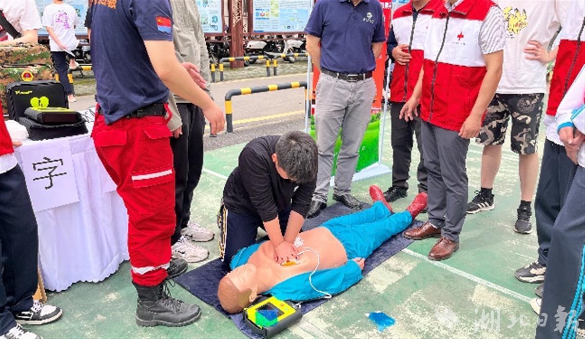 除“反诈”系列小游戏外,应急救援、应急救护也是同学们争相体验的活动。攀登结绳、模拟触电设备、海姆立克急救背心、AED除颤仪……同学们在专业人士的指导下“零距离”体验、“上手式”学习、“沉浸式”收获。大家争相利用救援模具开展心肺复苏等模拟实操练习。“对这次体验活动很期待!获得了新技能,关键时刻不仅能自救,还能对他人施以救援!”