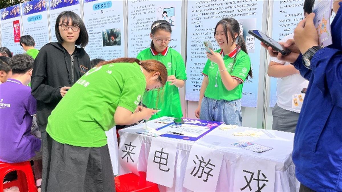 “恭喜您,您中奖啦!”该校玉成楼前的操场上,“安全嘉年华”户外活动如火如荼,一位志愿者正扮演不法分子,以“来电诱惑”等小型“剧本杀”形式,考验同学们的防范电信诈骗意识。