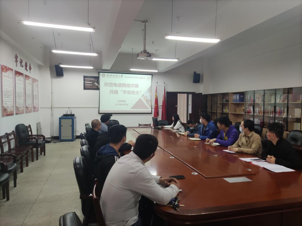 本网讯(通讯员 凌杰)为落实落细学校疫情防控最新政策要求,强化学生网络安全与疫情防控意识,4月3日下午,武汉纺织大学经济学院在崇德楼315(左)会议室组织召开班主任工作培训会,会议由学院党委副书记黄俊鹏主持。