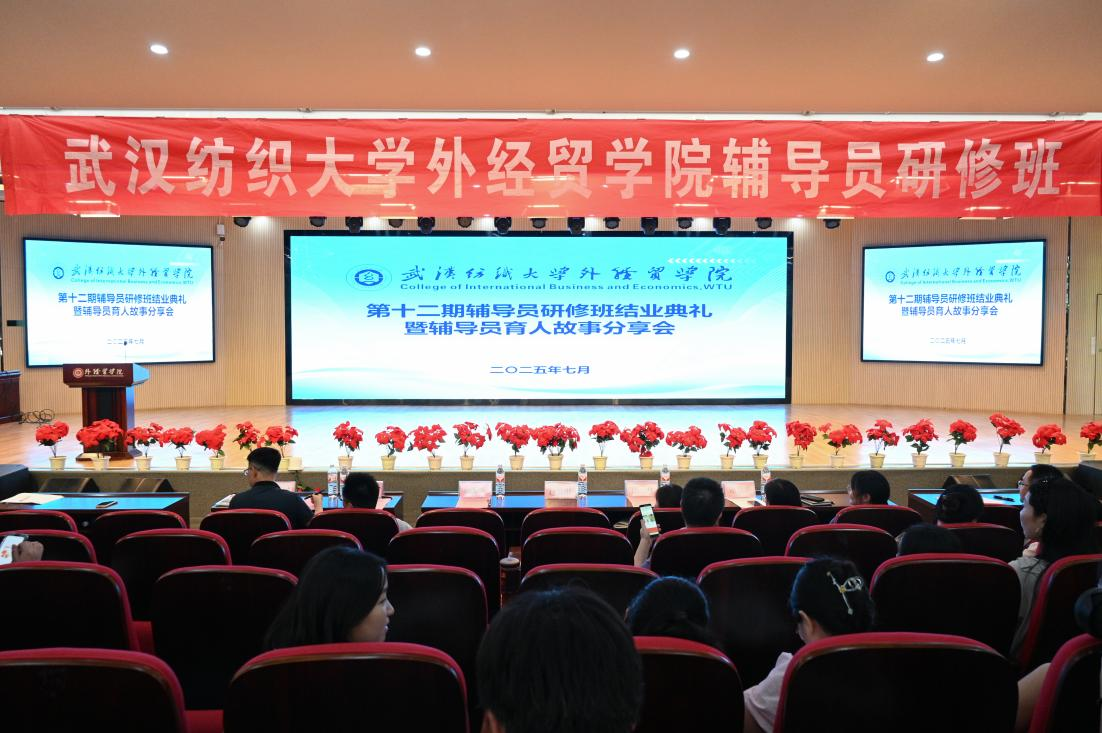 武汉纺织大学外经贸学院:我校第十二期辅导员研修班结业典礼暨辅导员育人故事分享会顺利举行2025-07-09为促进辅导员交流育人经验、提升育人水平,7月2日,我校第十二期辅导员研修班结业典礼暨辅导员育人故事分享会在学校学术报告厅举行。 -