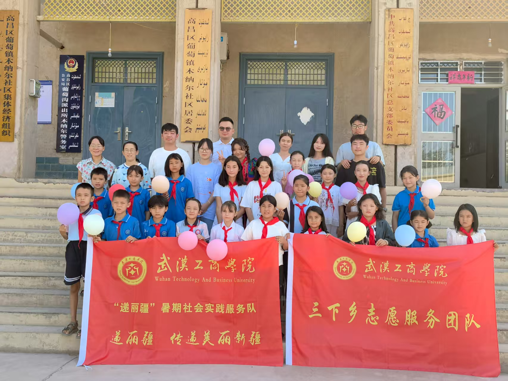 武汉工商学院:学校“递丽疆”暑期社会实践服务队连续四年赴新疆开展志愿服务2025-08-188月1日至9日,武汉工商学院物流学院“递丽疆”暑期社会实践服务队在学院党总支书记蔡菁、学生党支部书记周春雨的带队下,一行6人从武汉出发,远赴3000余公里外的新疆吐鲁番市高昌区木纳尔社区,成功开展了为期7天的“情暖童心筑梦边疆”爱心托管班社会实践活动。这是该社会实践服务队第4次前往新疆开展暑期“三下乡”社会实践活动,此次的服务对象为木纳尔社区的28名小学生。 -