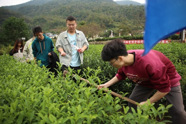 武汉工商学院:管理学院学子在茶园开展劳动实践课2024-10-23“施肥的时候肥料不能洒在茶树根部,要保持一定的距离,避免‘烧根’”,10月19日上午,在秭归县九畹溪镇石柱村圣天庄园茶叶种植示范基地,基地负责人吴光全手把手地教一群大学生给茶树松土施肥、修剪树枝、锄草等。这是武汉工商学院管理学院为70多名大学生组织的一场生动的劳动实践课。 -