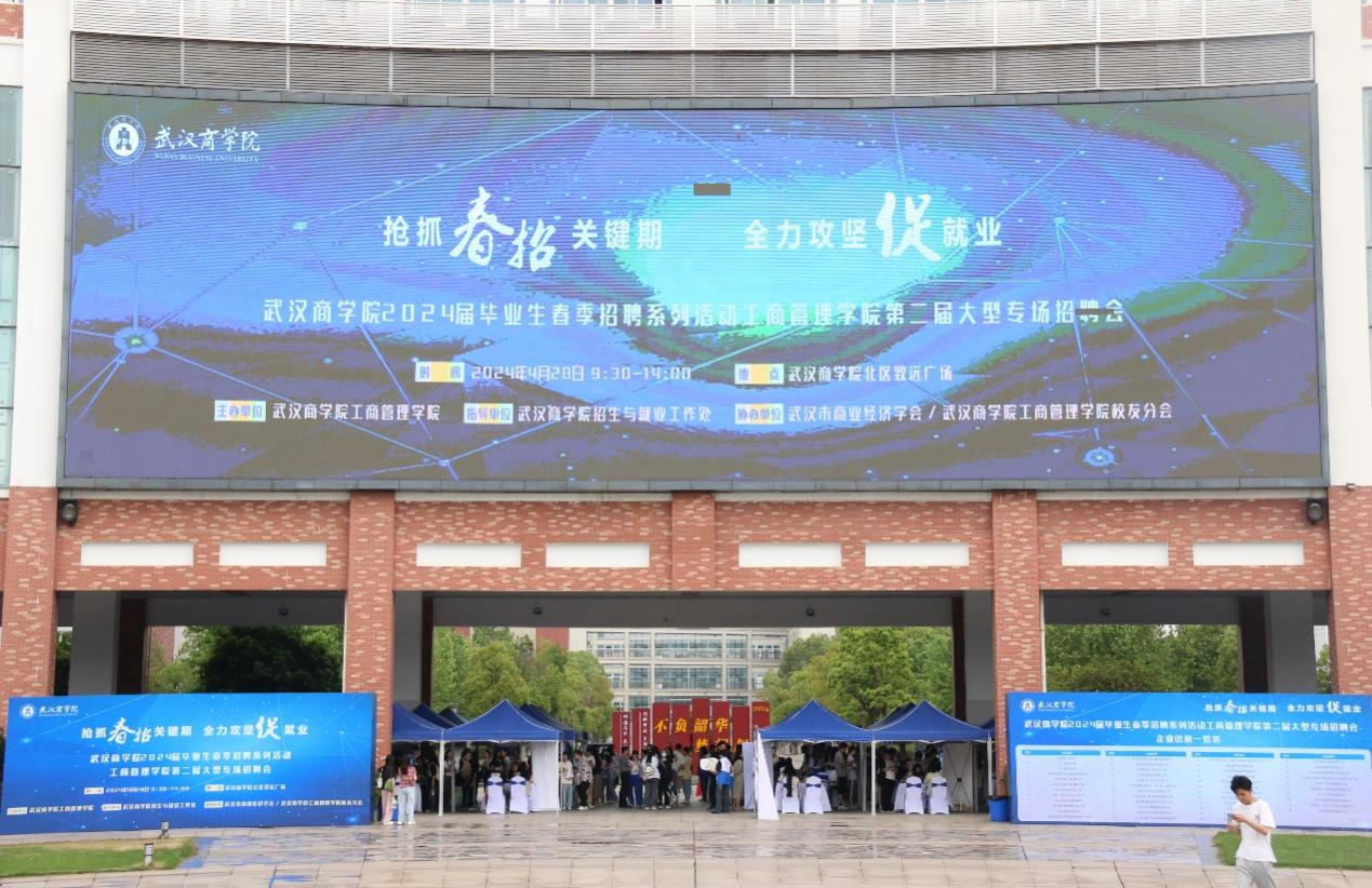武汉商学院:圆满举办2024届毕业生春季招聘会2024-04-30为贯彻落实教育部部署的春季促就业攻坚行动,武汉商学院工商管理学院以“抢抓春招关键期,全力攻坚促就业”为主题,于4月28日上午在北区致远广场弧形楼下举办2024届毕业生工商管理学院春季专场招聘会活动。 -