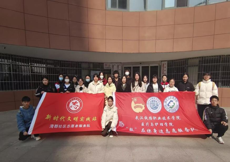 武汉铁路职业技术学院:“暖意”代“寒意”,服务暖人心 ——医疗与护理学院赴湾郡社区开展志愿活动2024-01-17为进一步传承中华优秀传统文化,弘扬“奉献、友爱、互助、进步”的志愿服务精神,1月12日,医疗与护理学院团委书记、专职辅导员冯少华老师带领“救”在你身边志愿服务队前往湾郡社区开展了“社区志愿行,服务暖人心”志愿服务活动,用“暖意”代“寒意”,用行动为社区居民传递爱与温暖。