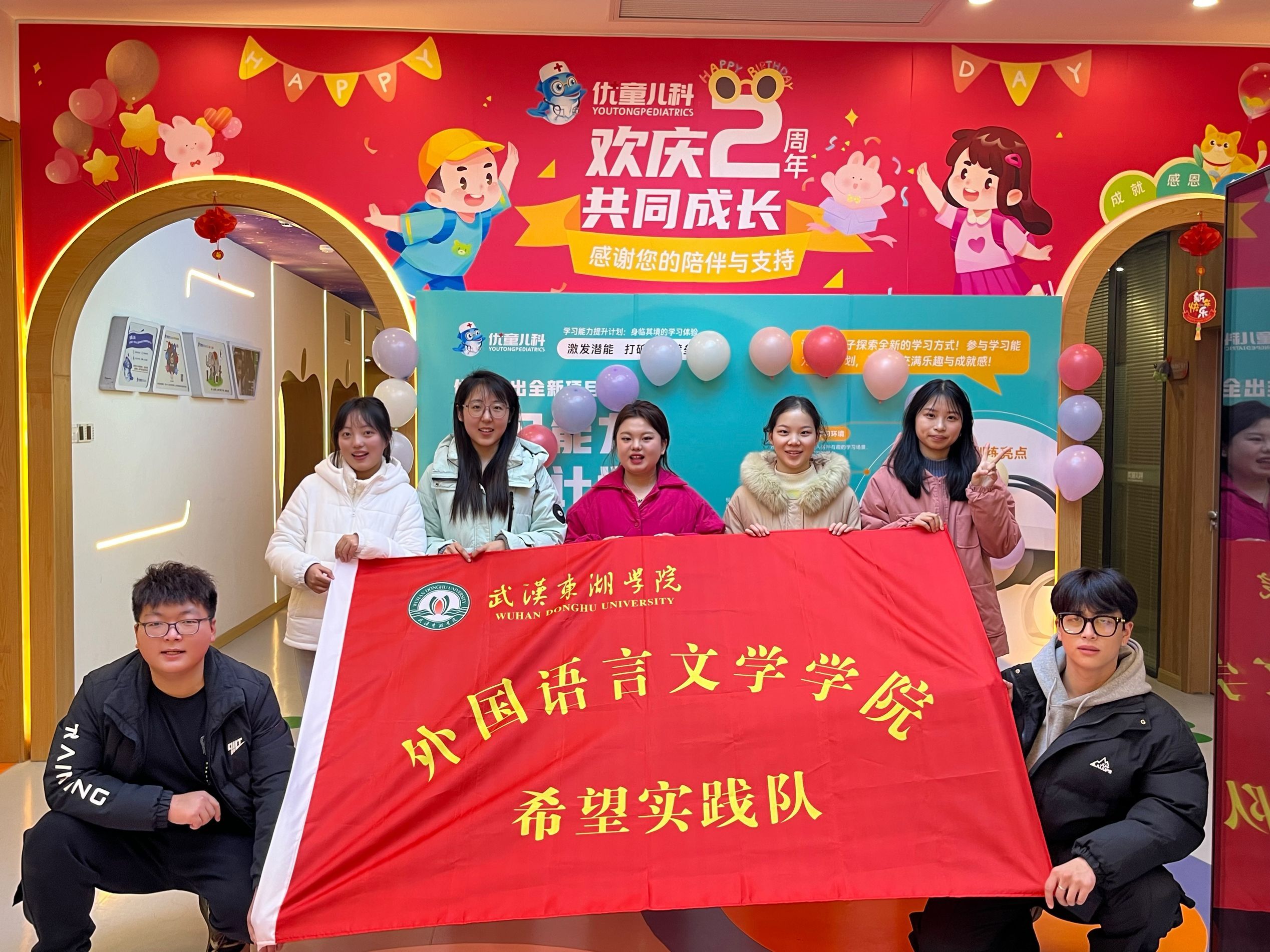 武汉东湖学院:大手拉小手共成长 关爱特殊儿童勇担当——“希望”实践队开展志愿实践活动2024-01-08为投身社会实践、帮助弱势群体,提升社会各界对孤独症群体的关注度,促进儿童青少年心理健康发展,武汉东湖学院外语学院“希望”实践队全体成员1月2日-4日前往武汉市硚口区同济优童儿科,开展呵护与关爱孤独症儿童的志愿实践活动。