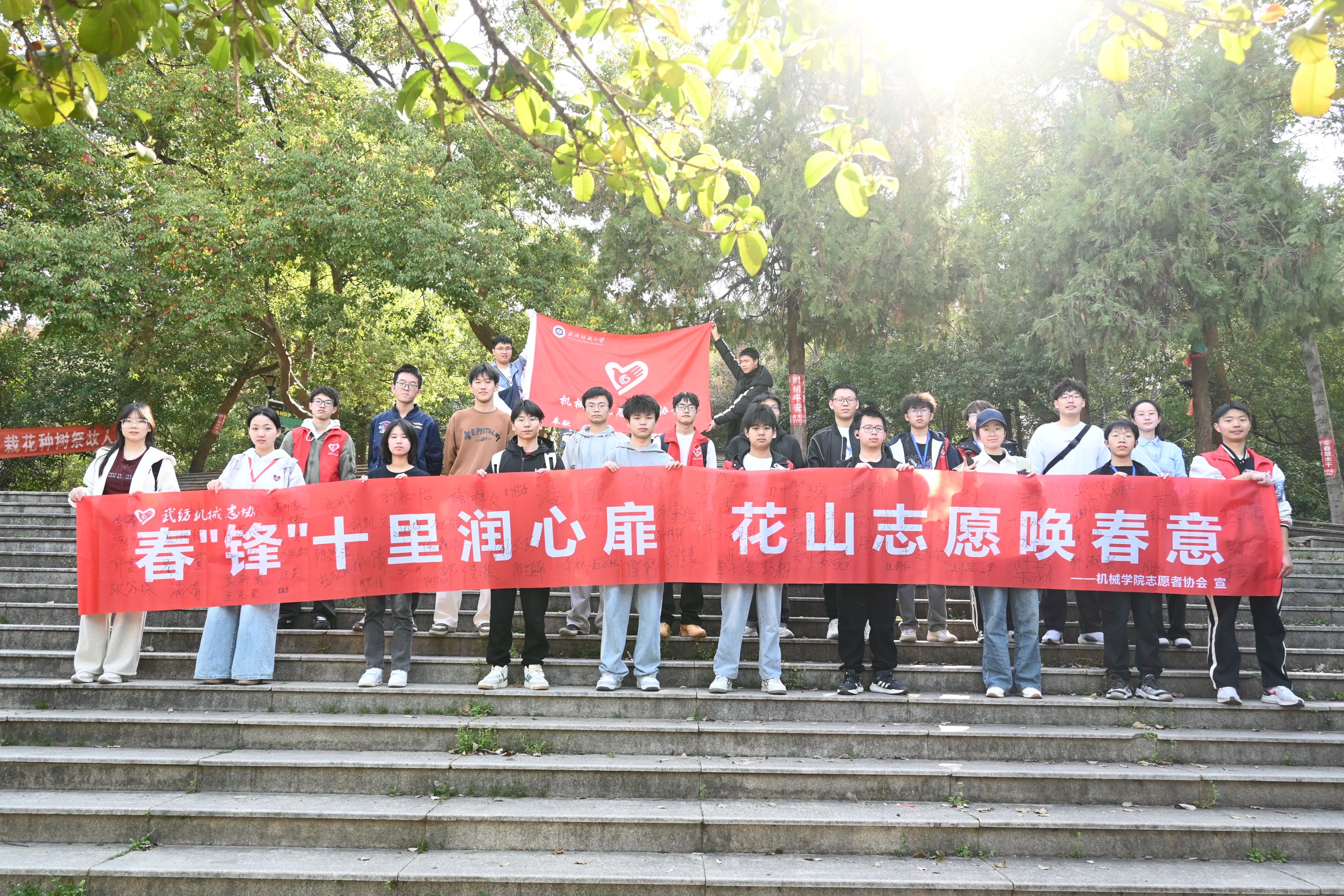 武汉纺织大学:春“锋”十里润心扉,花山志愿唤春意2025-03-23融融三月春意浓,暖暖雷锋情谊深。为了践行并宣扬雷锋精神,2025年3月22日清晨,武汉纺织大学机械学院志愿者协会组织50余名志愿者,在万物复苏中奔赴花山,开展“春‘锋’十里润心扉,花山志愿唤春意”环保志愿活动。此次活动以清山护绿、精神传承的创新模式,将生态文明实践与雷锋精神弘扬相结合,展现新时代青年的责任担当。