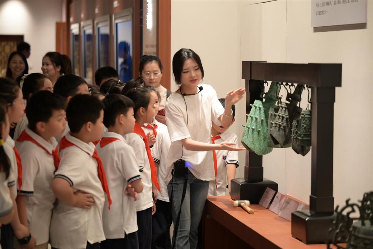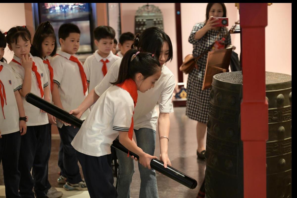 “学校《太喜欢历史了》清晨为你读经典活动中,我就听过编钟,今天我居然也能敲响编钟!”5月12日上午,通过“百校百馆”平台预约,武汉市汉阳区钟家村明德小学的20名同学,走进了湖北音乐博物馆,在游览中玩转千年前的音乐,探索声音中的不平凡。